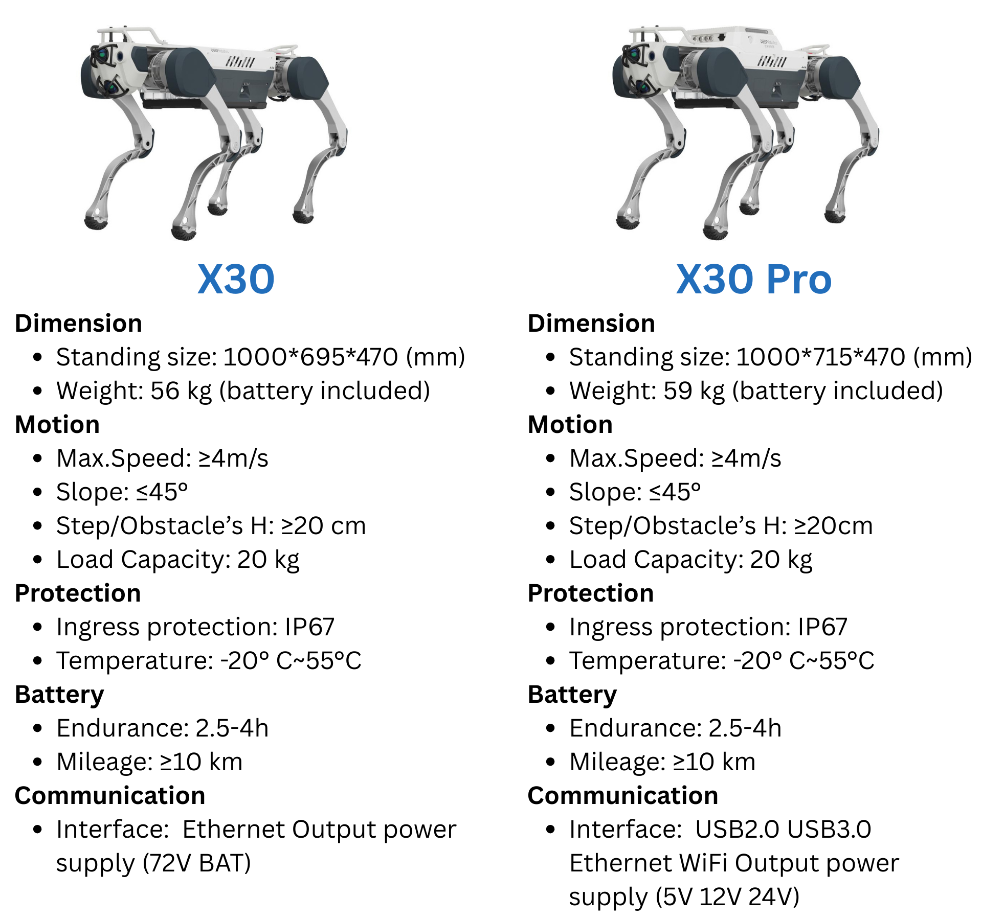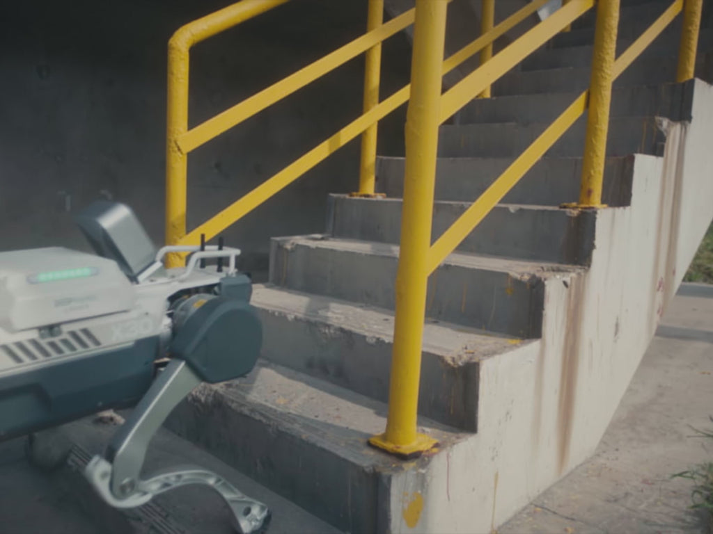 X30 can flexibly climb up and down stairs at a 45° angle; it can stably climb industrial stairs, respond to sudden task requirements the first time, and quickly traverse into complex scenes.