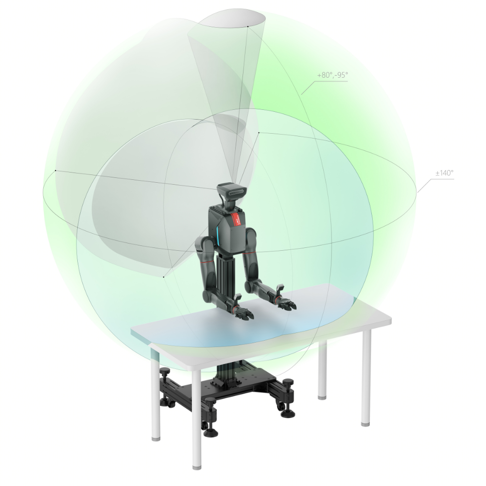 Featuring a 7-DoF robotic arm offering a 70cm reach-the largest workspace in its class-and a spherical human-like wrist design for agile wide range operations. The front camera covers the full arm span, ensuring complete visibility and precise control.